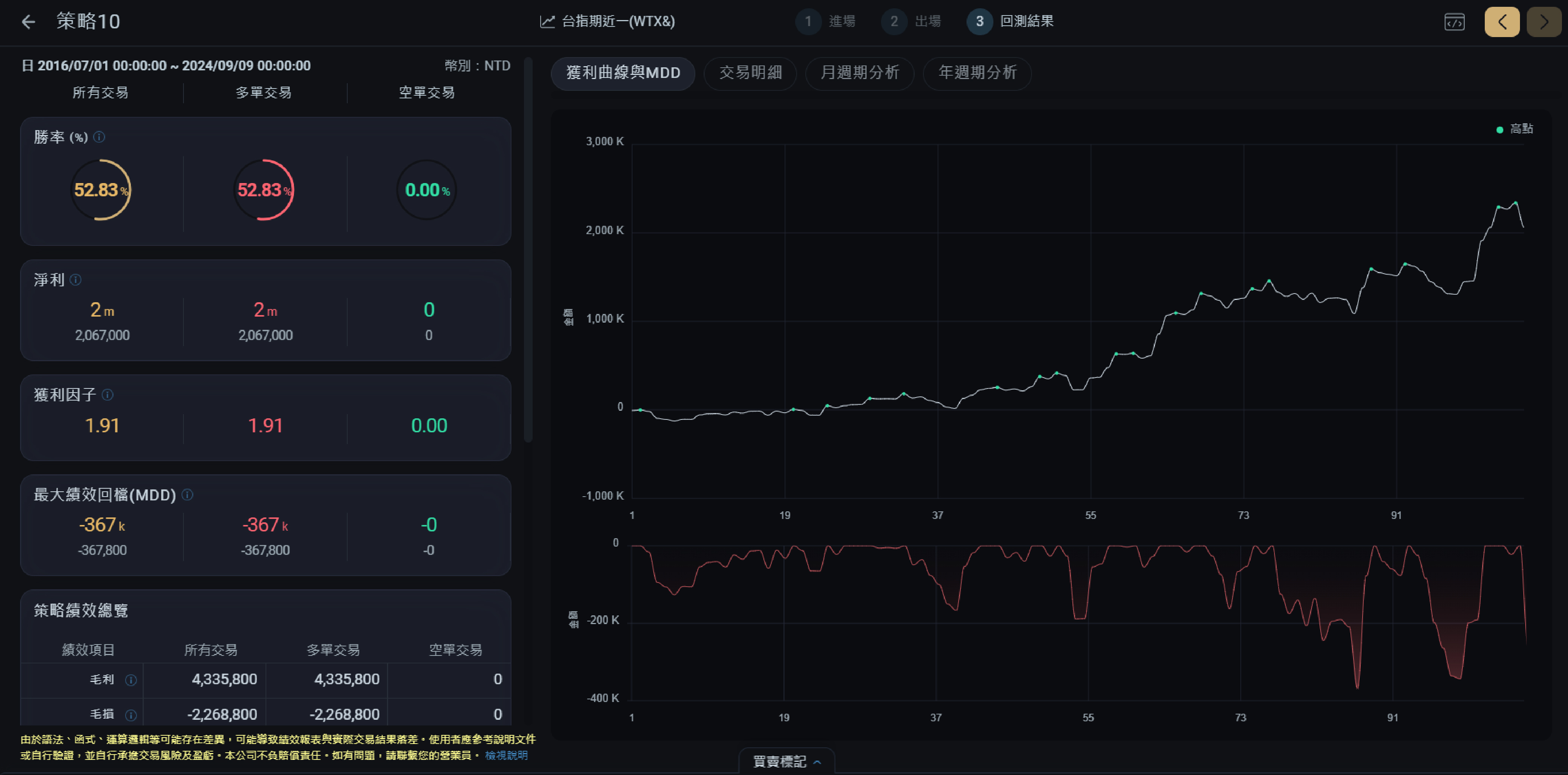 3.過去的績效數據並不代表未來獲利,交易人還是要依據本身狀況做好審慎評估。